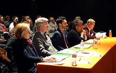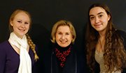 PAEP held the 2016 Pennsylvania Council on the Arts (PCA) regional finals for Poetry Out Loud on Saturday, January 30th at the University of the Arts. Twenty-seven schools in the five-county region of Philadelphia, Bucks, Chester, Delaware, and Montgomery competed at their schools selecting a winner to participate in the regional finals. This was the largest regional competition in the state. Winner, Jessica Lehman, left, represented Merion Mercy Academy, and first runner up, Shira Moolten, right, J.R. Masterman & Demonstration School, were selected from a competition that included 22 students reciting poems over the course of three rounds, and was presided over by PCA Council Member from Philadelphia, Susan Goldberg, center.