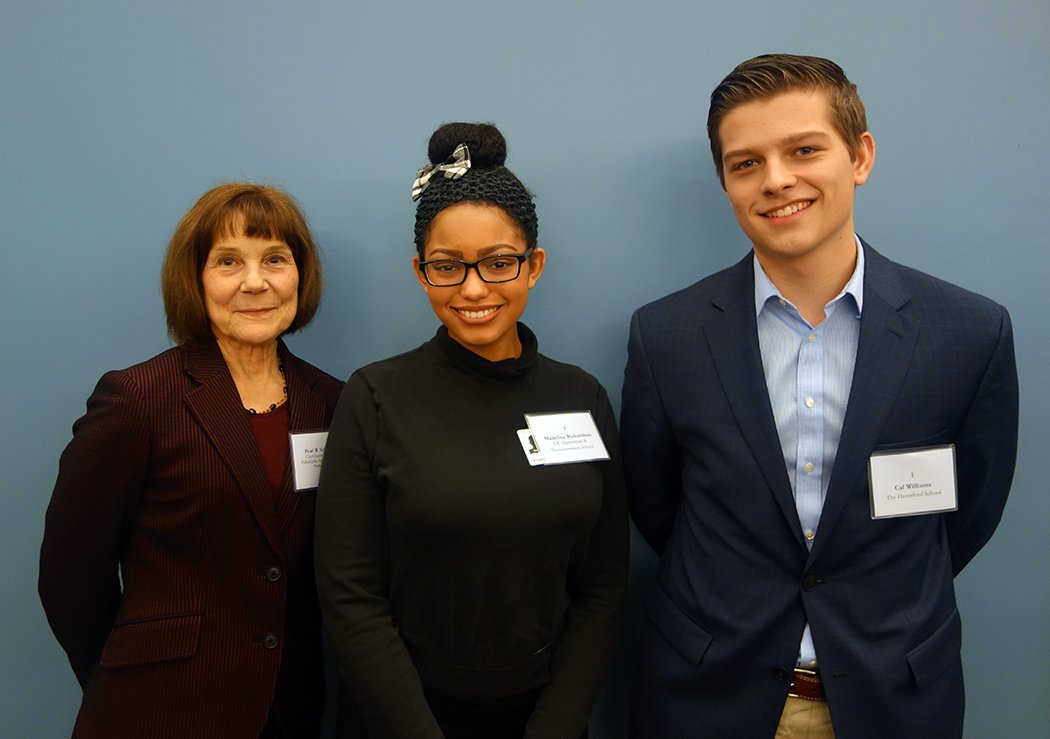 Madalina Richardson, an eleventh-grade student at the J.R. Masterman Laboratory & Demonstration School, was the first-place winner. This is the first time that a student from a Philadelphia public school has won first prize. Madalina will now go on to compete in the state finals in Harrisburg on March 6. Madalina delivered three poems from memory, one of which was a rousing recitation of “The Battle-Hymn of the Republic”. The first runner up was Cal Williams a twelfth-grade student from The Haverford School.